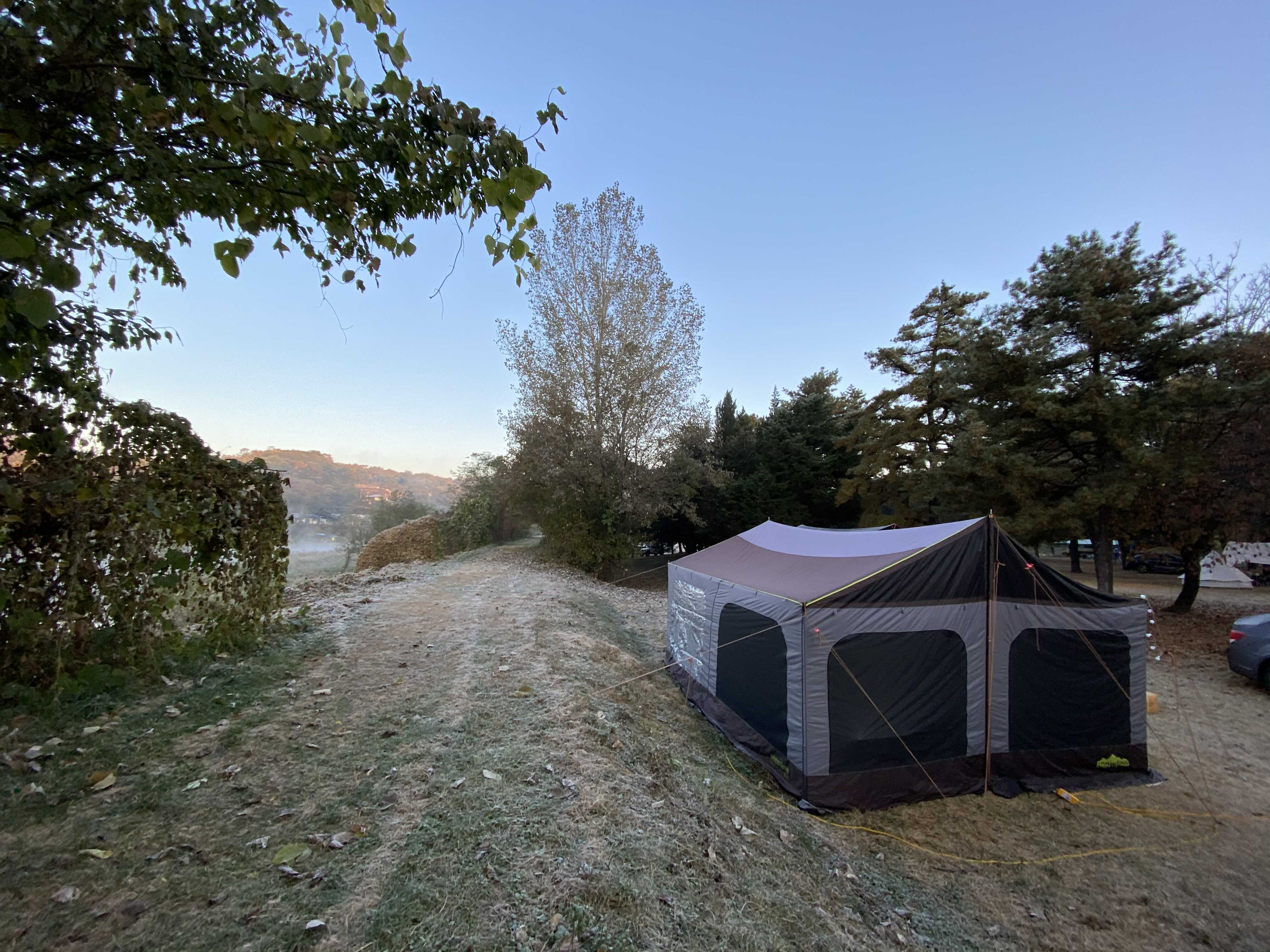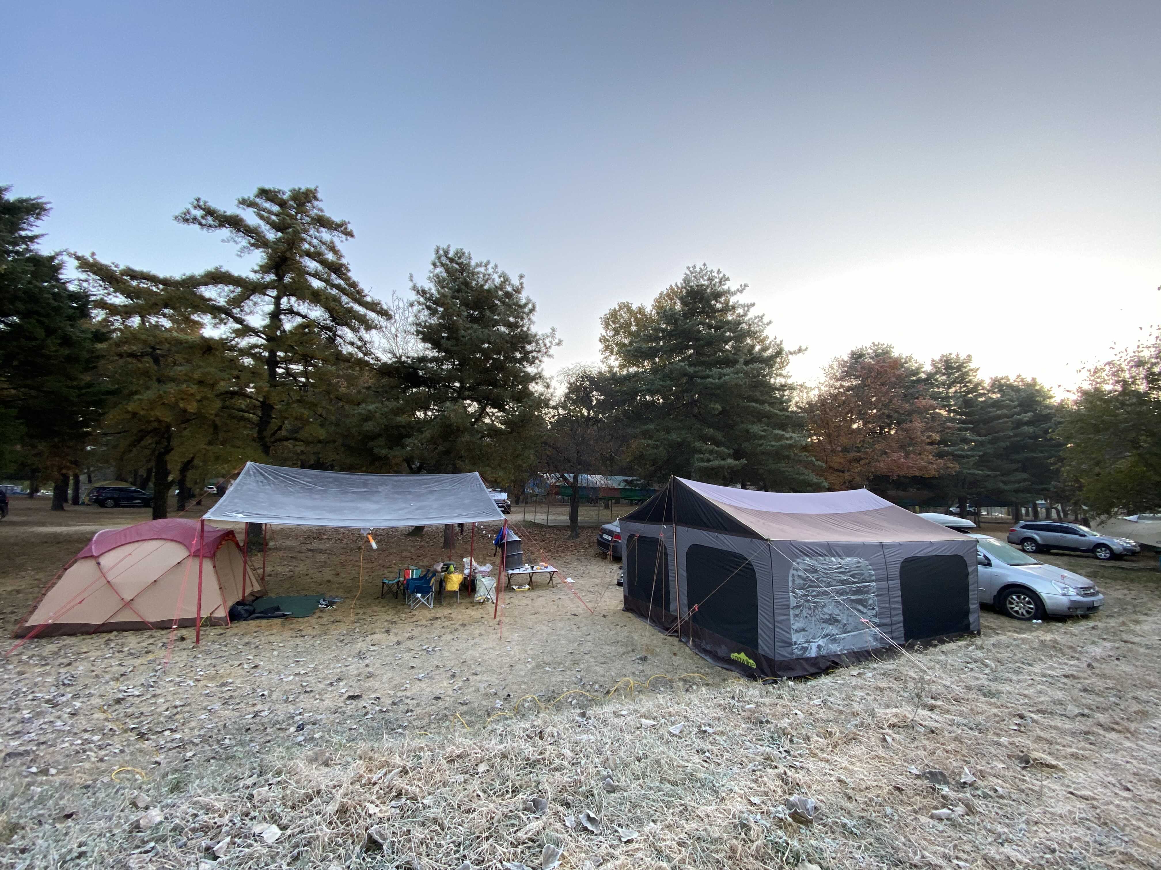 까만색 타프위로 서리가 앉았어요 ㅋ