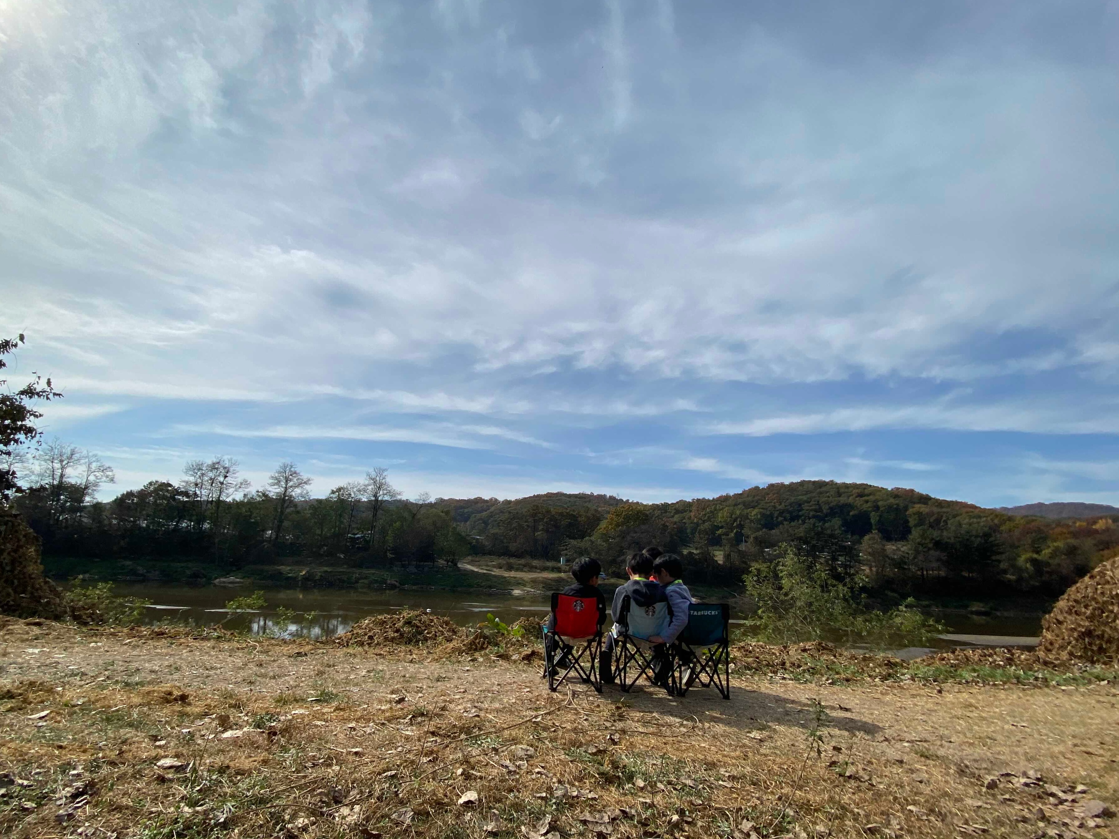 뚝방길에 앉아서 커피한잔하면서