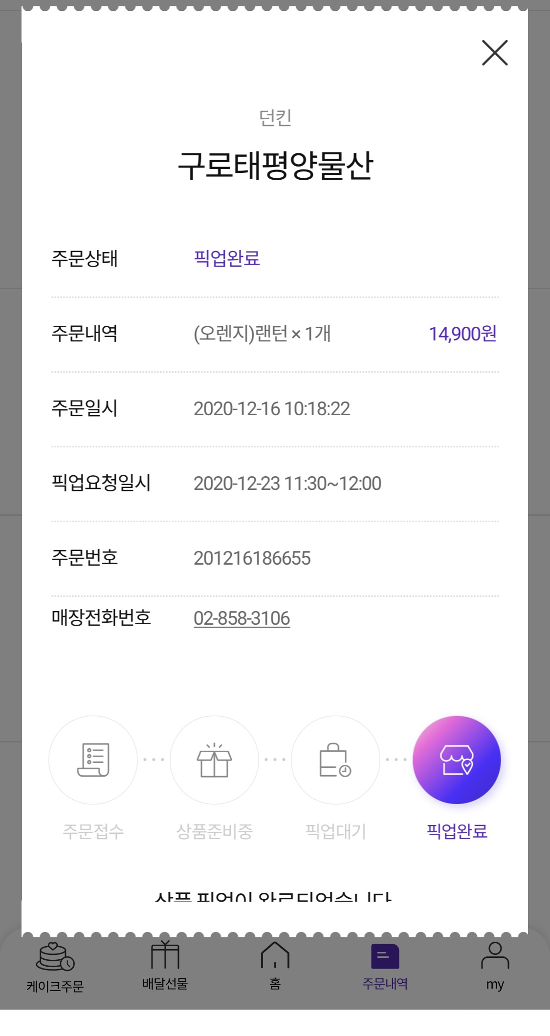 이런.... 다른매장 픽업으로 예약됐어요..