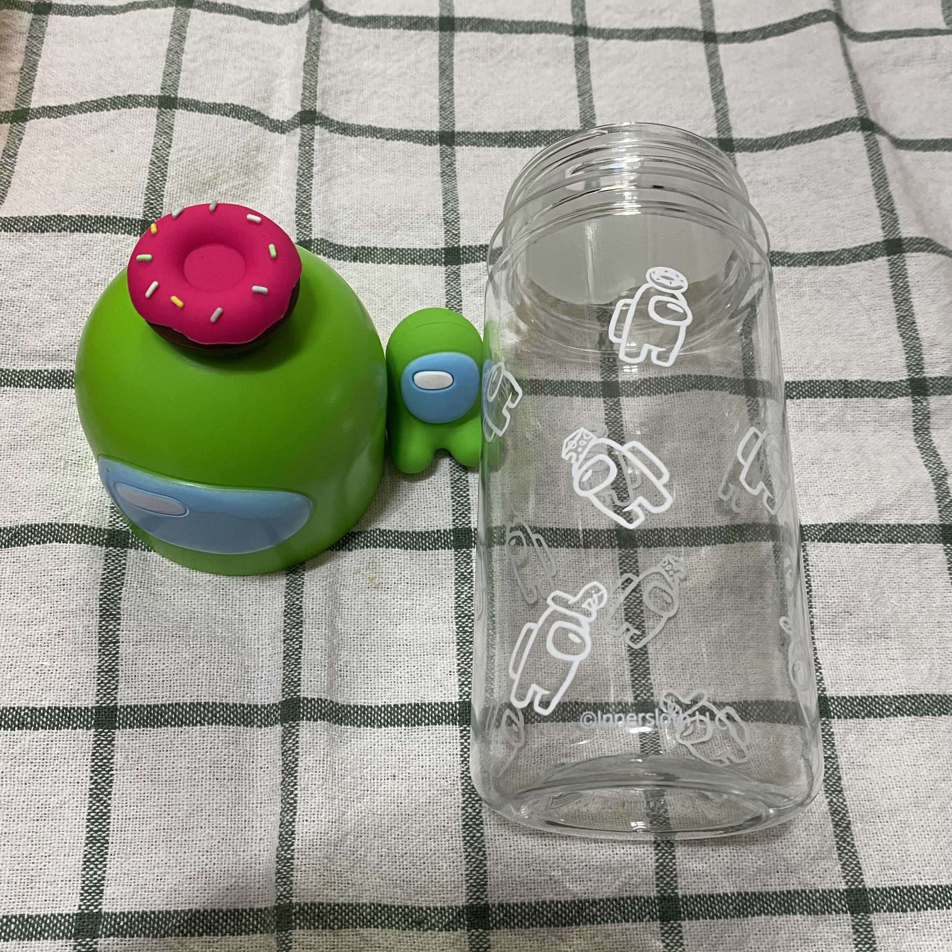 뚜껑에 어몽어스랑 도넛 두개 꼭지가 있어요